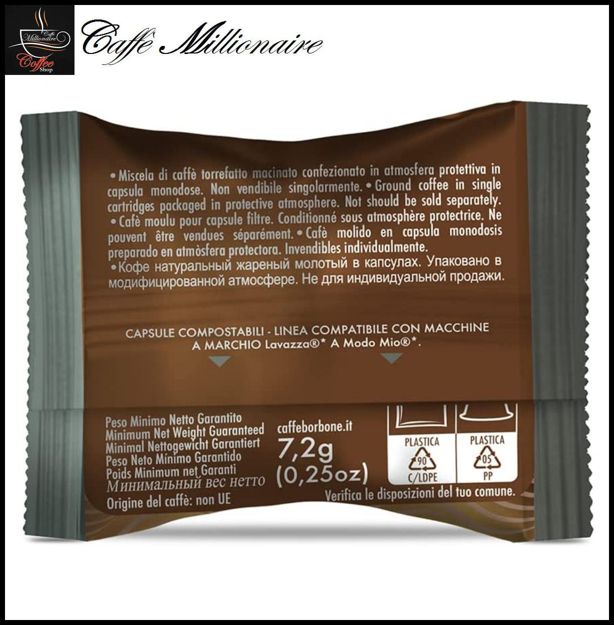 Peso netto minimo garantito: 7.2 gr